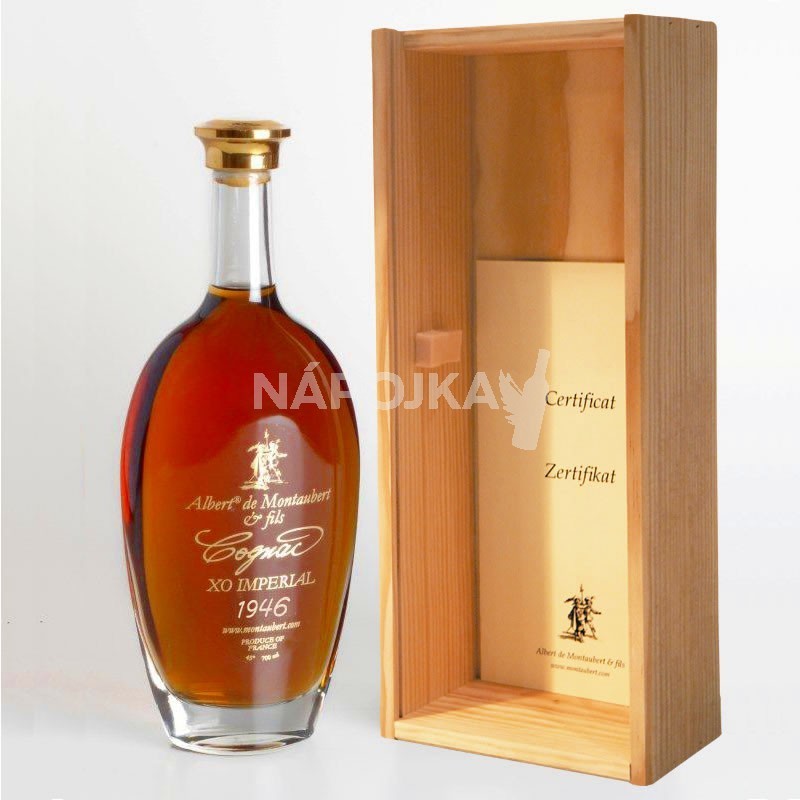 Ročník 1946 z kolekce nádherných ročníkových koňaků Millesime Imperial od firmy Albert de Montaubert. Ročník 1946 je tvořen exkluzivně koňakem z vína sklizeného v roce 1946.