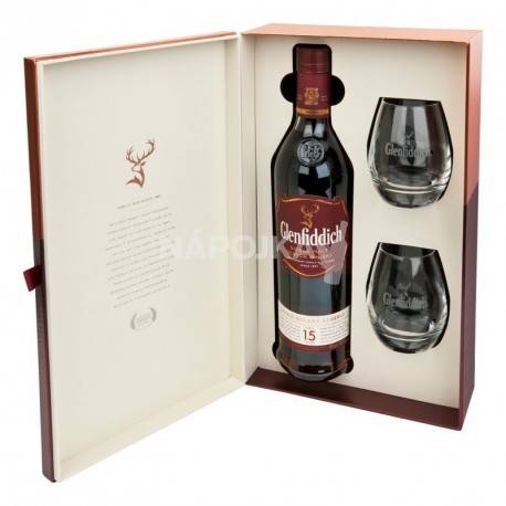Glenfiddich Solera Single Malt Whisky je nejpopulárnější čistě sladovou whisky na světě, která se pije ve 180 zemích. Vyznačuje se plnou ovocnou vůní s jemnými medovými a vanilkovými tóny. Originální dárková sada.