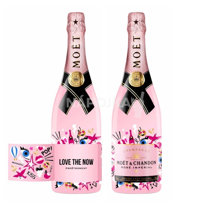 Valentýnské balení MOËT & CHANDON Rosé v limitovaném přebalu. Etiketa obsahuje samolepky, které lze využít na vytvoření jedinečné lahve Moët & Chandon Rosé. Rosé Impérial je nejvíce extrovertní a svůdné šampaňské Moët & Chandon. Živé a vstřícné, Rosé Impérial se vyznačuje zářivou barvou, intenzívním ovocným charakterem a explozivní chutí.
